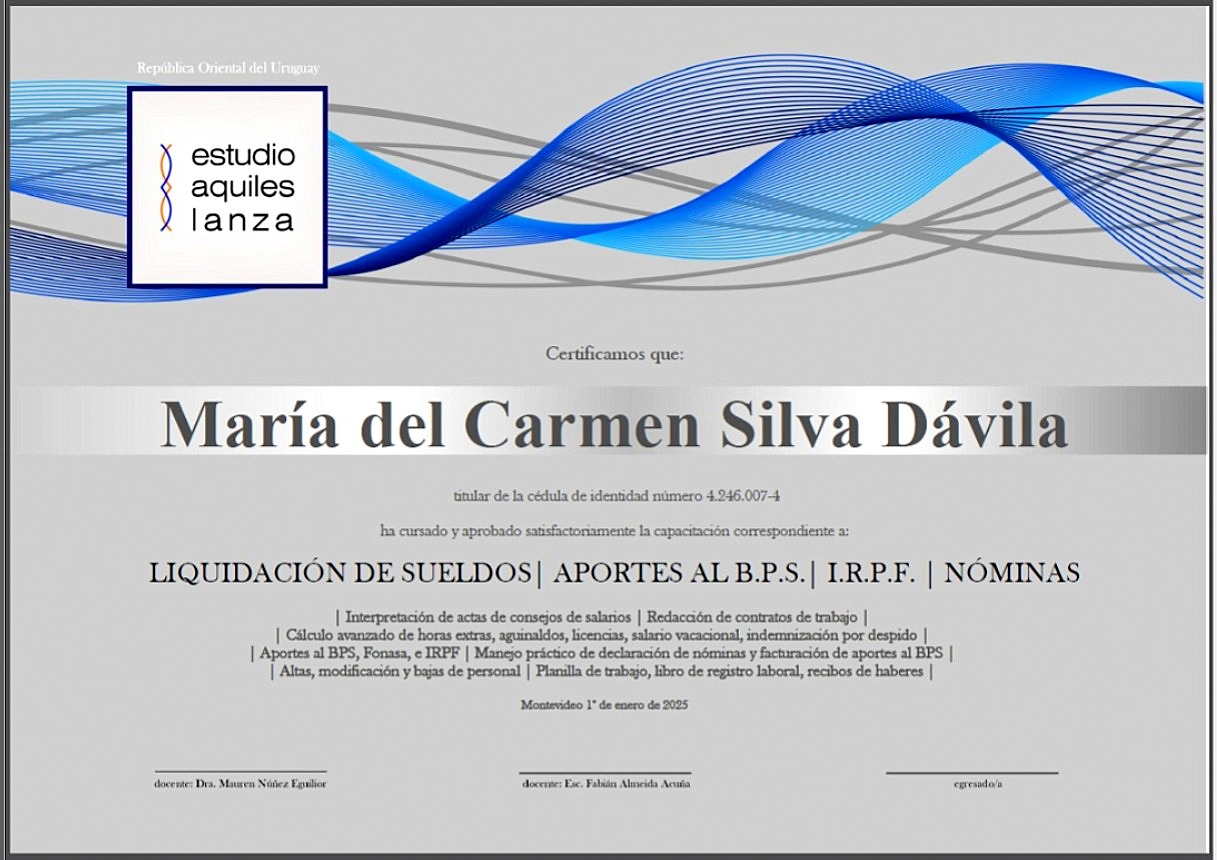 * por bonificación para egresados de Estudio Aquiles Lanza: ⇒ escríbenos