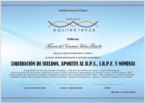 diploma correspondiente a la capacitación de «Liquidación de Sueldos, aportes al BPS, IRPF y Nóminas»: