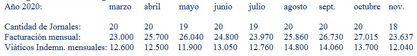Téngase presente que, por Convenio Colectivo, a partir del mes de junio del 2020, inclusive, el jornal correspondiente a su tarea fue fijado
